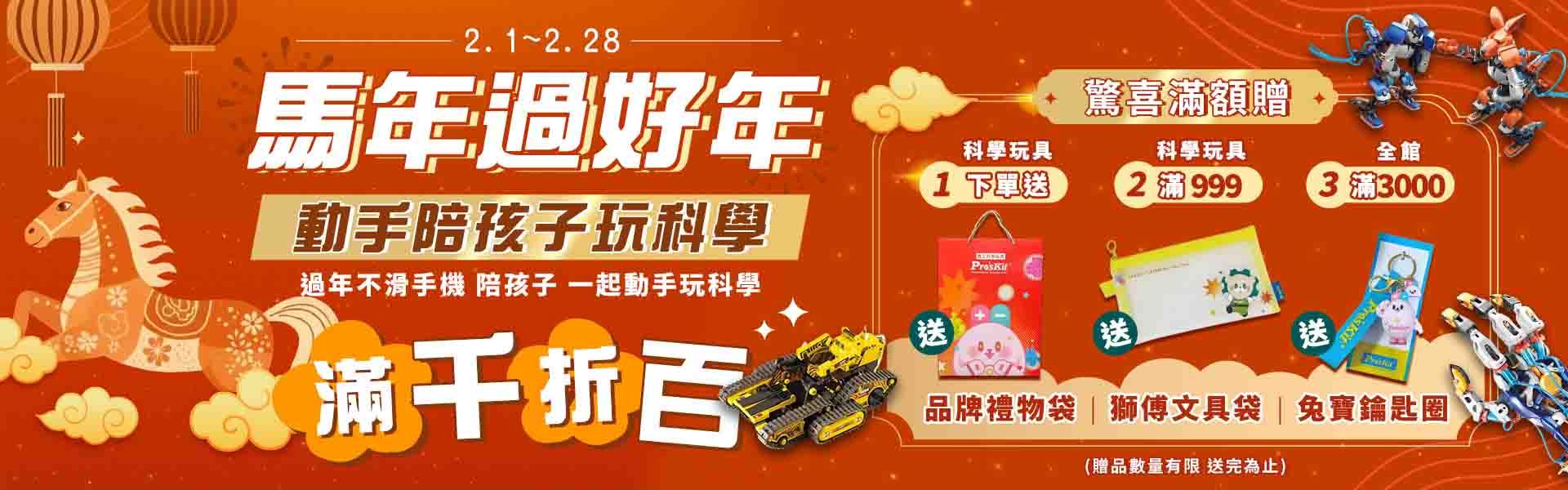 2/1-2/28 馬年動手玩科玩,全館滿千折百,滿3千送兔寶鑰匙圈