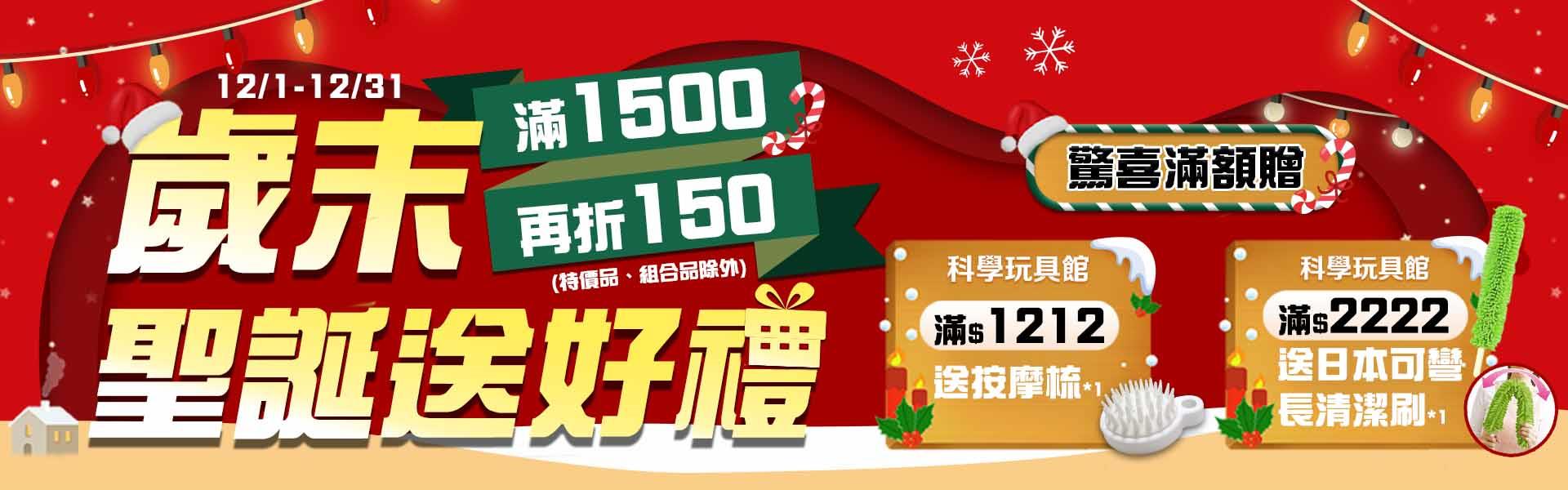 12/1-12/31 雙11購物節 全館滿1500現折150(特價品除外) 滿額送好禮